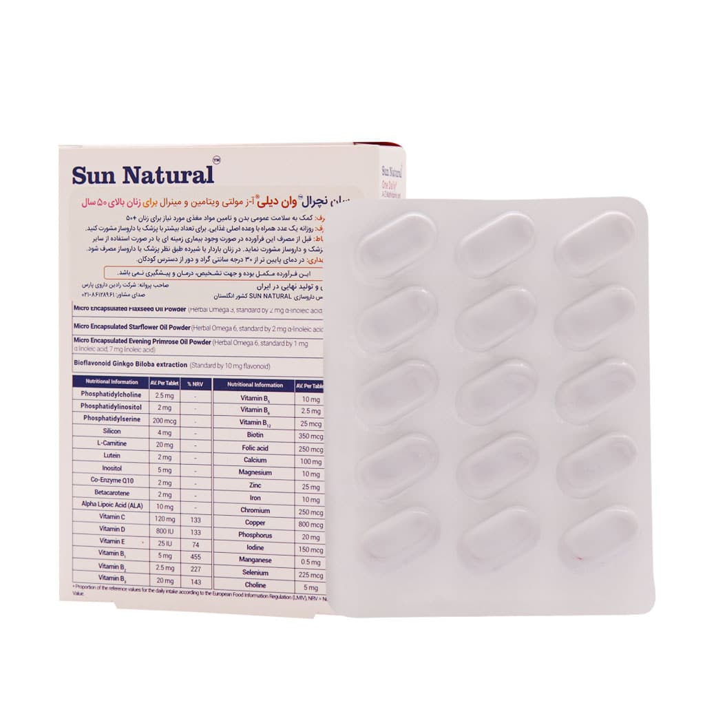 قرص مولتی ویتامین مینرال وان دیلی بانوان بالای 50 سال سان نچرال 30 عدد
