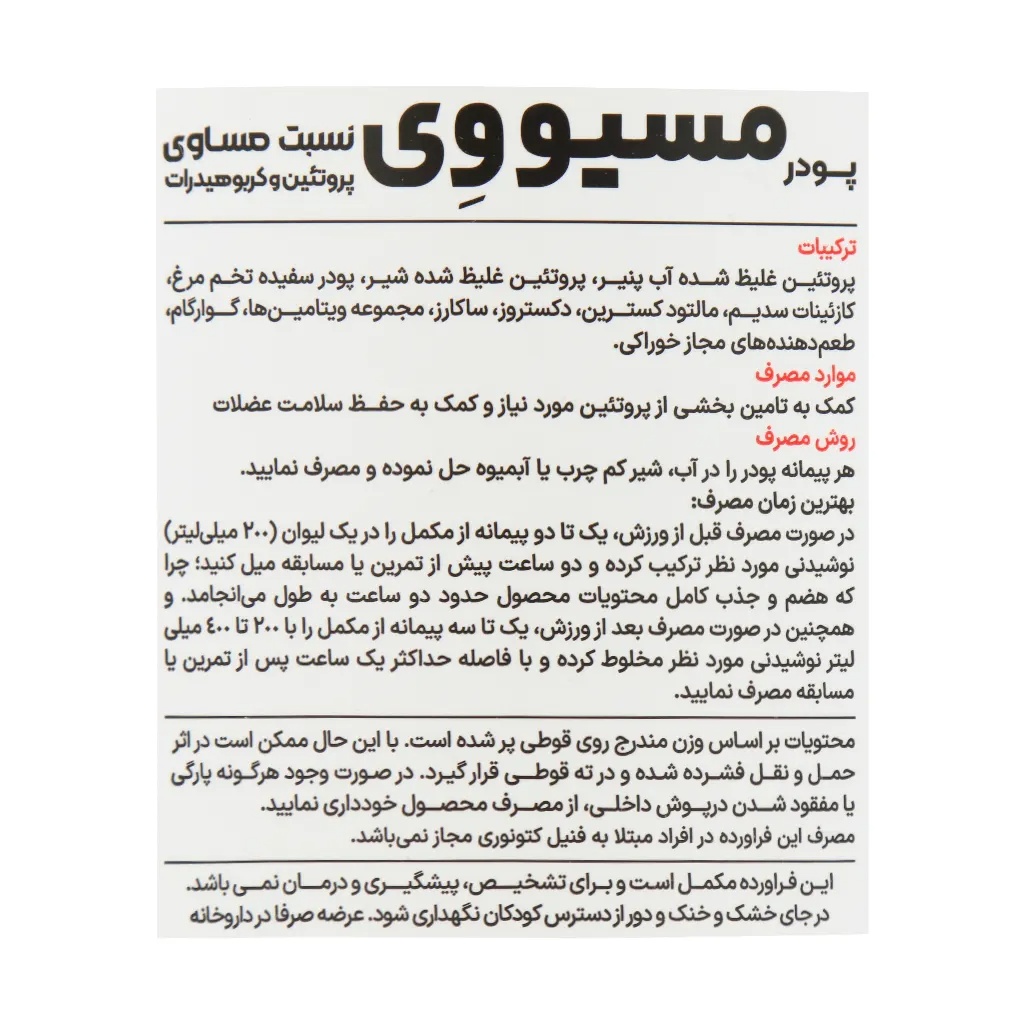 | کارایی | افزایش حجم عضلات بدن، تامین اسد آمینوهای ضروری بدن، عضله سازی |