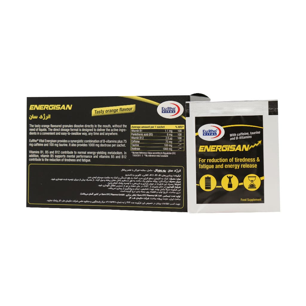 اگر به دنبال یک مکمل فوری برای افزایش انرژی، هوشیاری ذهنی و مقابله با خستگی روزانه هستید، ساشه Energisan گزینهای هوشمندانه است. این محصول حاوی ۷۵ میلیگرم کافئین، ۱۰۰ میلیگرم تائورین و ویتامینهای گروه B (مانند B1، B5 و B12)