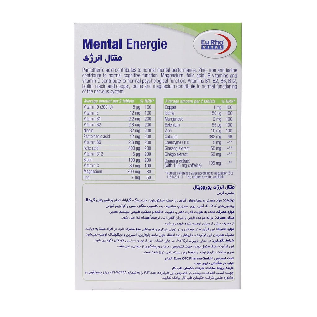 اگر به دنبال یک مکمل تخصصی برای تقویت تمرکز، افزایش انرژی ذهنی و بهبود عملکرد سیستم عصبی هستید، قرص «منتال انرژی Eurho Vital» گزینهای بسیار مناسب است. این محصول ترکیبی هوشمندانه از ویتامینها، مواد معدنی و عصارههای گیاهی مانند Ginkgo biloba، Panax ginseng، Guarana و کوآنزیم Q10 را داراست، که همگی به بهبود جریان خون مغزی، مبارزه با استرس اکسیداتیو و ارتقای حافظه کمک میکنند.