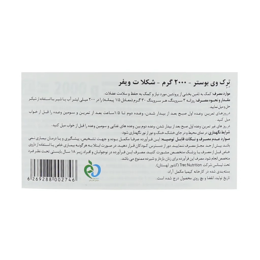 پودر پروتئین بوستر وی ترک نوتریشن 2000 گرمی طعم فیفر شکلاتی