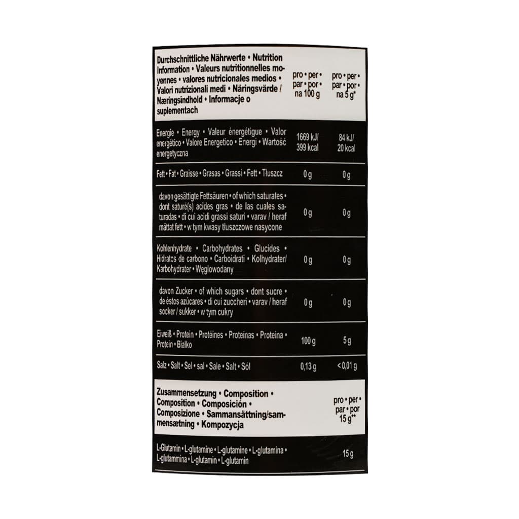 -فرمولی با ۱۰۰٪ ال-گلوتامین خالص، بدون چربی، بدون کربوهیدرات و بدون قند اضافه.