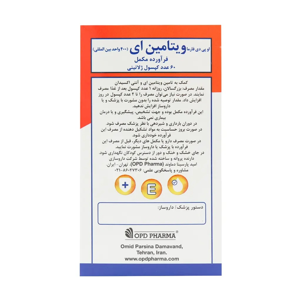 کپسول ویتامین E400 او پی دی فارما 60عدد