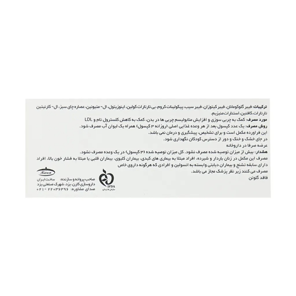 | کارایی | کاهش اشتها،کاهش کلسترول |